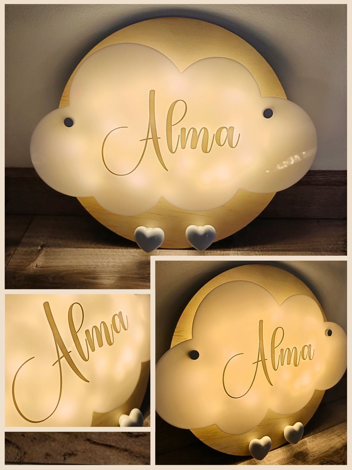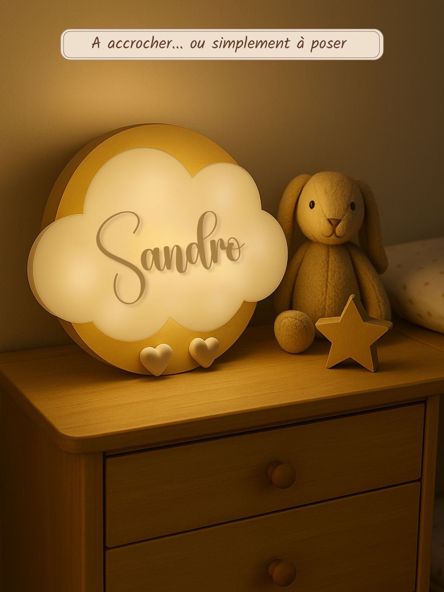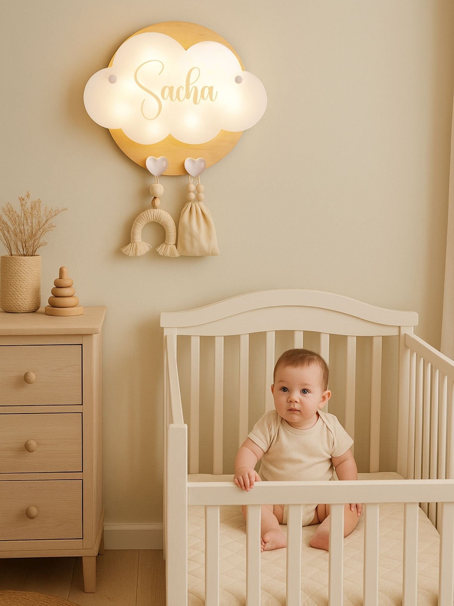 Offrez à votre enfant une veilleuse toute douce en forme de nuage, réalisée à la main avec notre plus grand soin.